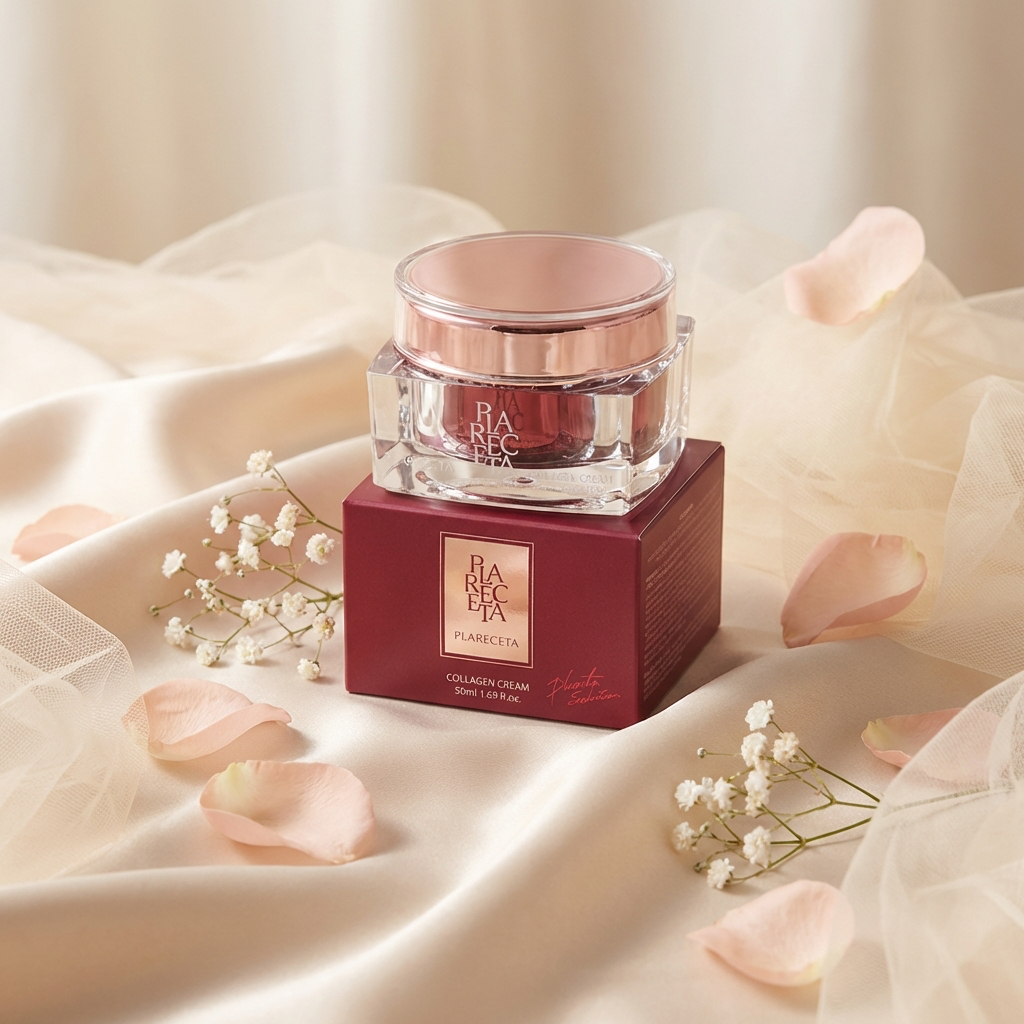Plareceta Collagen Cream is a restorative anti-aging facial cream with placenta extract and collagen, designed for intensive nourishment, hydration, and maintenance of skin firmness. The formula is aimed at improving skin texture, elasticity, and overall tone.