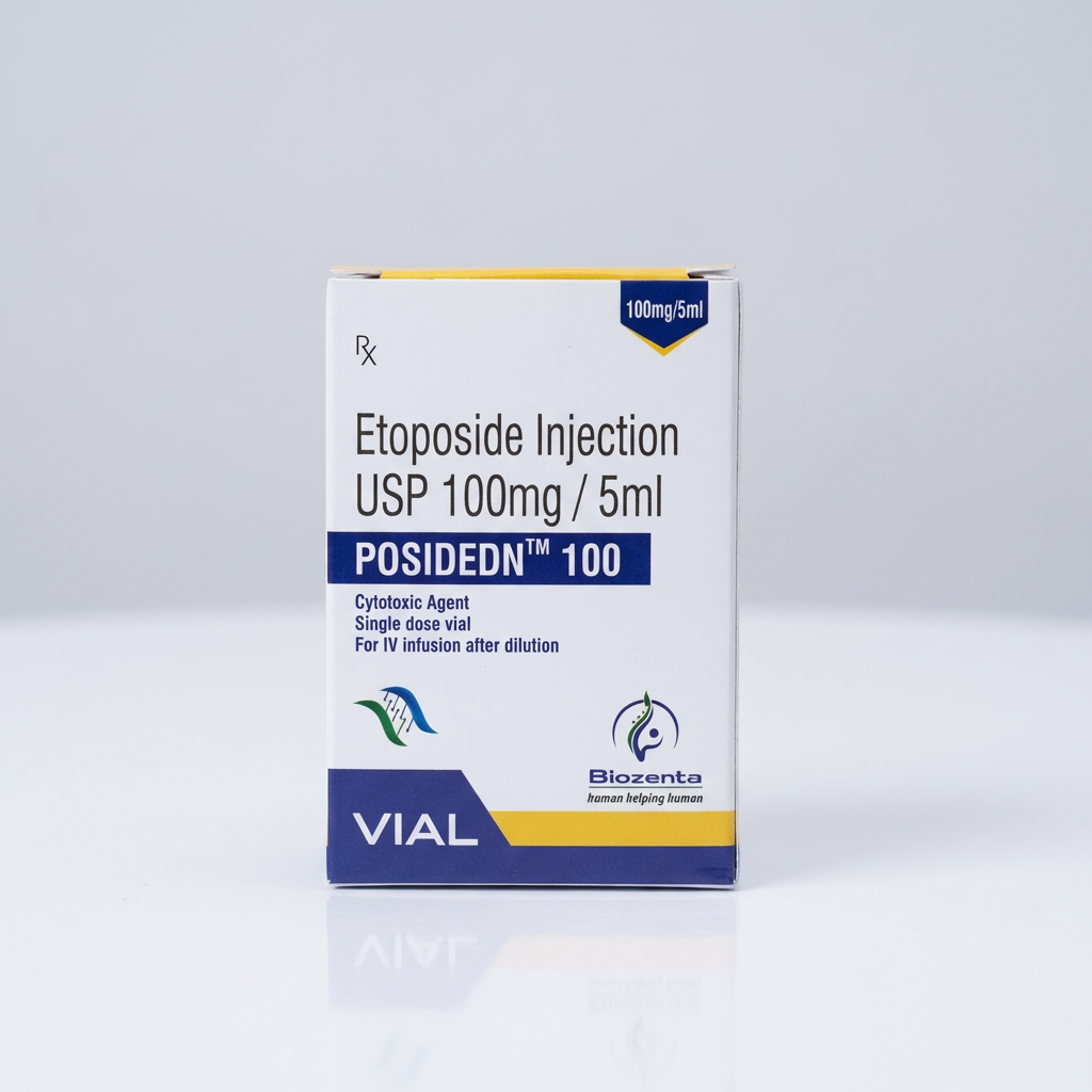 Posidedn™ 100 — це цитотоксичний протипухлинний препарат на основі етопозиду, який використовується в хіміотерапії злоякісних пухлин. Призначений для внутрішньовенного введення після розведення розчином для інфузії. Застосовується лише за призначенням онколога та під медичним контролем у стаціонарі або під наглядом досвідченого лікаря.